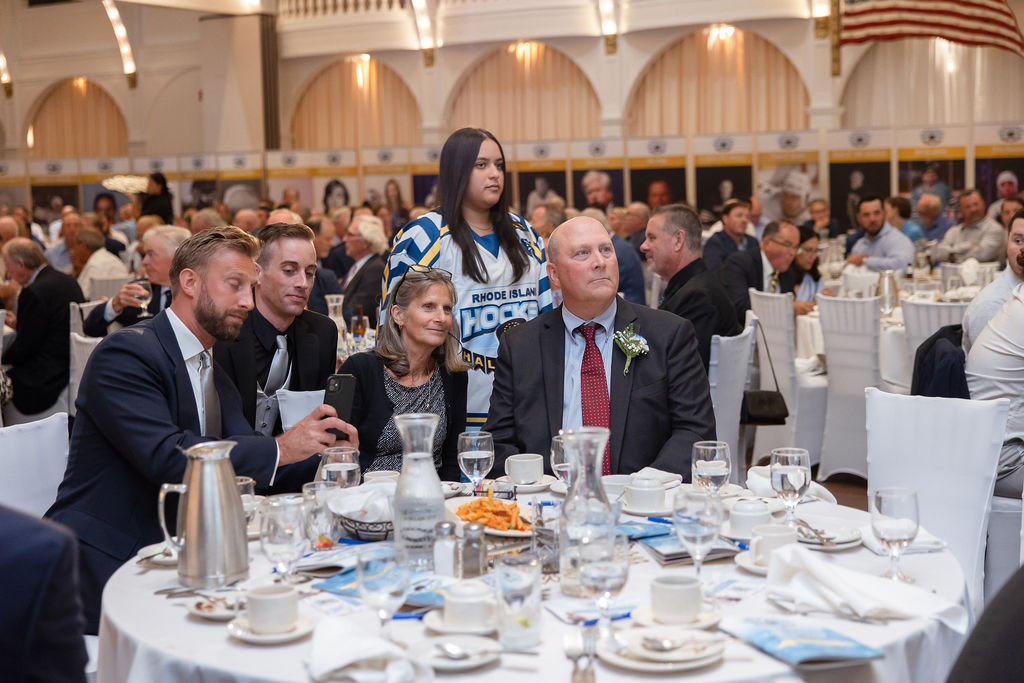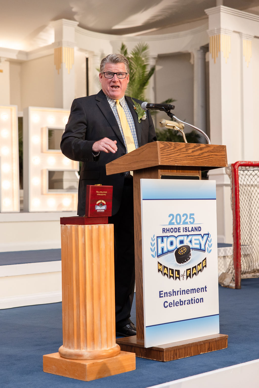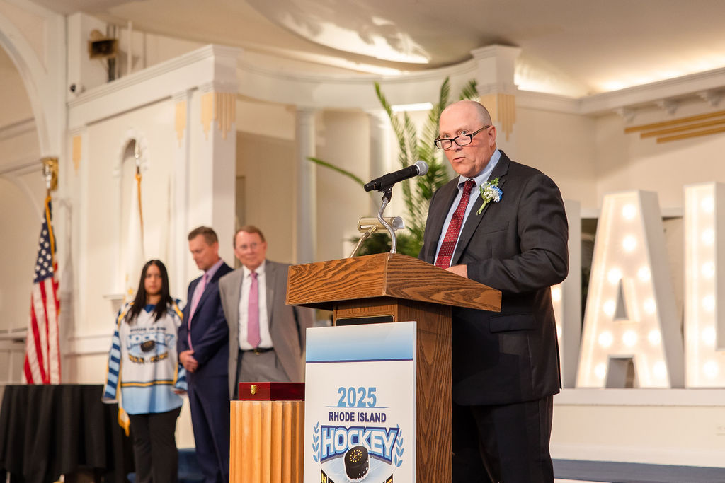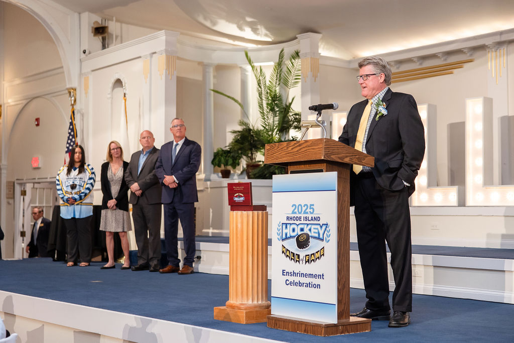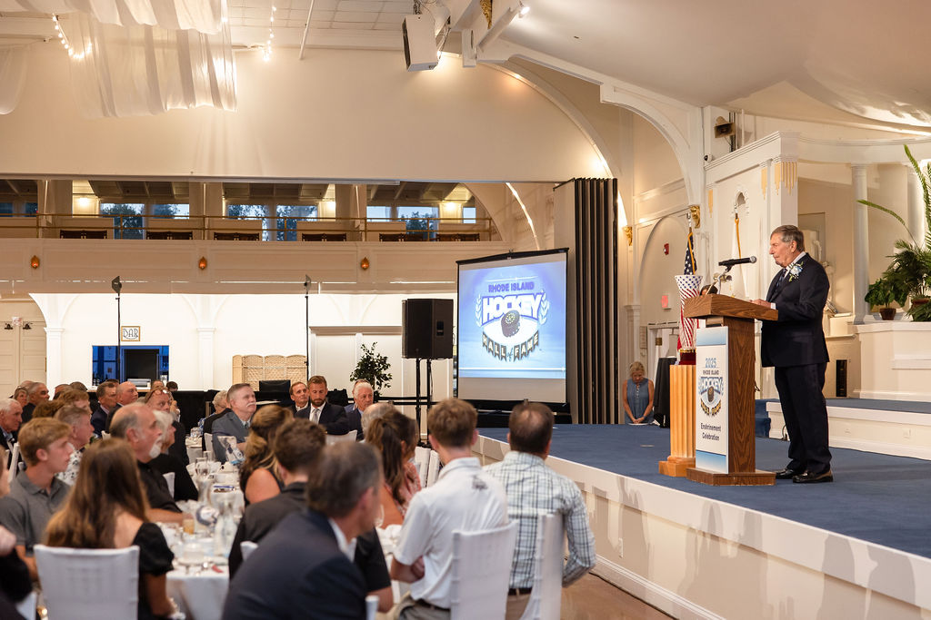 Another sold out gathering of family, friends, fans, former teammates, and hockey royalty joyfully mixed at historic Rhodes–on-the-Pawtuxet to pay tribute to the inspiring careers and achievements of the RI Hockey Hall of Fame’s “Class of 2025.”